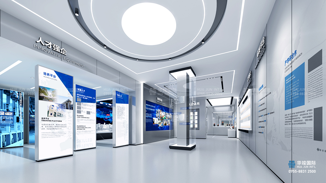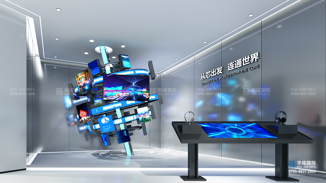 寶勝科技園區展館設計項目是由華竣出品的優秀作品,華竣以創新的智慧展廳設計理念,融合互聯網+思維,順應科技化趨勢,結合互動多媒體、數字影片、數字沙盤、虛擬現實等科技展項,打造震撼視覺的高品質科技展廳。