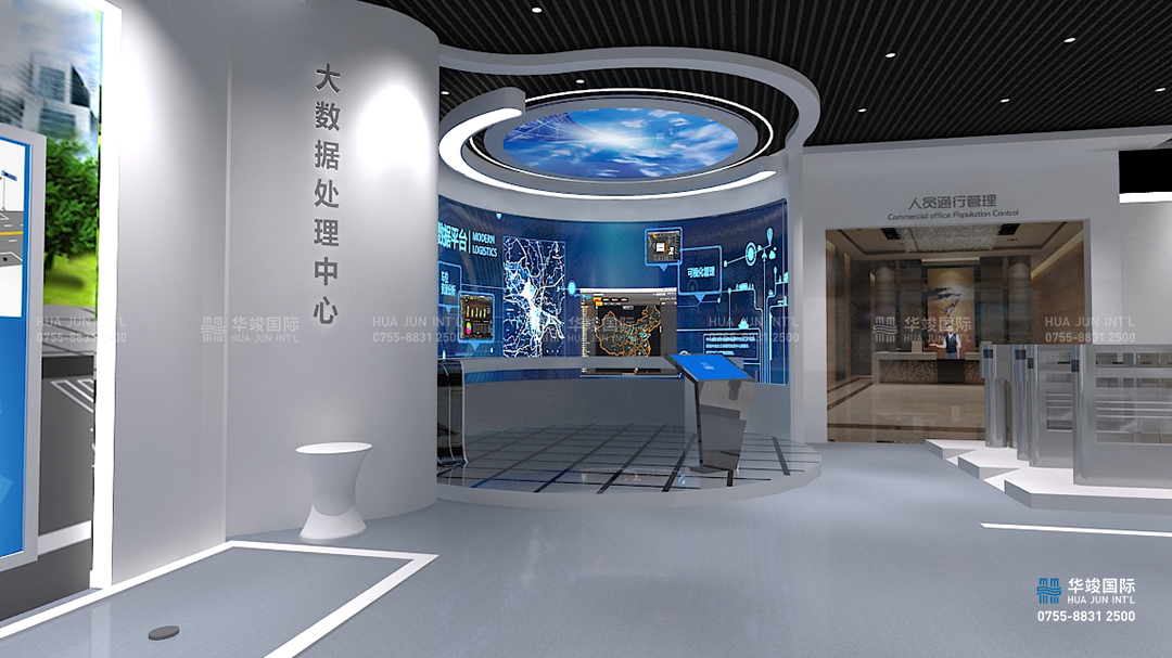 捷順科技·大數據智慧展廳設計項目由華竣數創執行整體設計施工,華竣數創以創新的智慧展廳設計理念,融合互聯網+思維,順應科技化趨勢,結合互動多媒體、數字影片、數字沙盤、虛擬現實等科技展項,打造震撼視覺的高品質科技展廳。